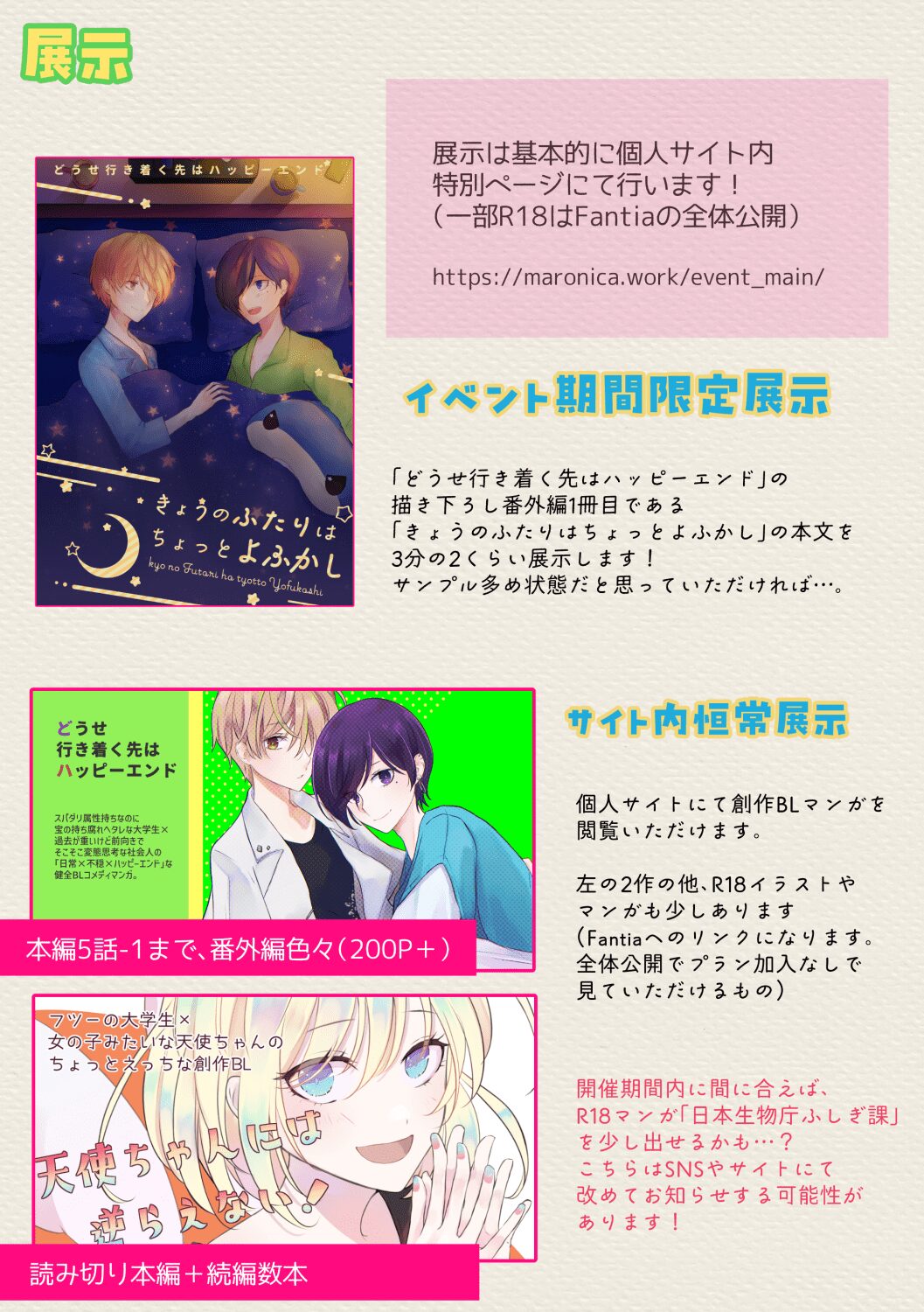 こちらのページをブックマークしていただけますと、イベント期間中はスムーズに情報が得られるかと思います。