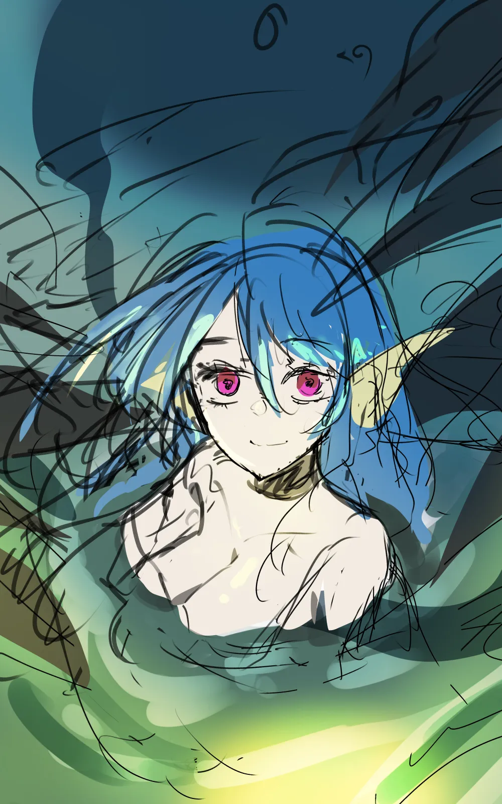 髪の毛の明暗差とか、身体の周りの波の雰囲気など、自分の中でうーんと思ったものはなるだけ描き直しました。