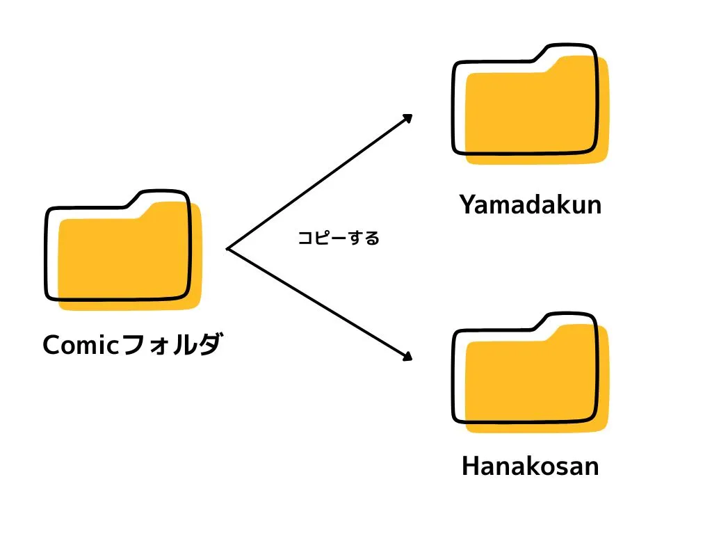例えば「山田くん」と「花子さん」という2つのマンガがある場合、「Comic」フォルダをコピーし、「山田くん」と「花子さん」のフォルダを作成すればいいわけです。