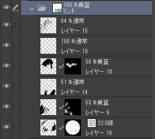 さらに、レイヤーは白抜きなどする必要がない限り「乗算」にすると、実際の印刷に近くなります。